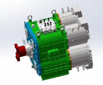 Rendering of 3-Speed Transmission + Four-Motor Configuration